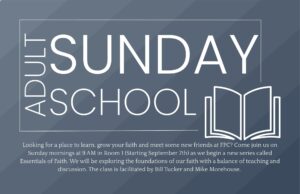 Join us for Adult Sunday School each week as we grow in faith together through thoughtful discussion, fellowship, and the study of God’s Word.